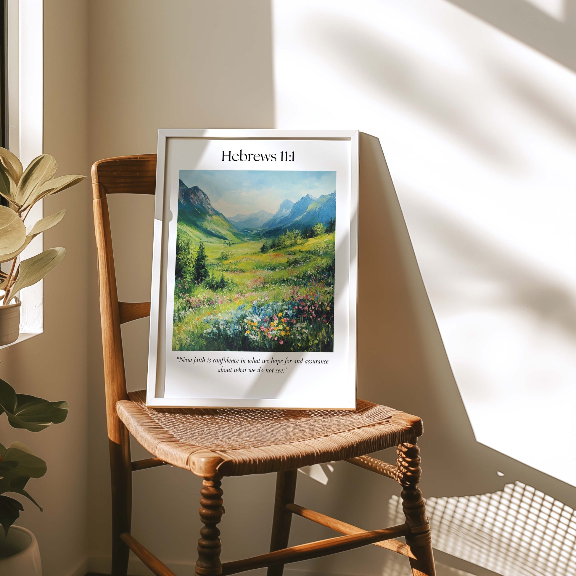 With soft colors and an open, calming view, this Hebrews 11:1 artwork offers a soothing reminder of what it means to trust in God. It fits beautifully in bedrooms, living rooms, or any space meant for reflection.