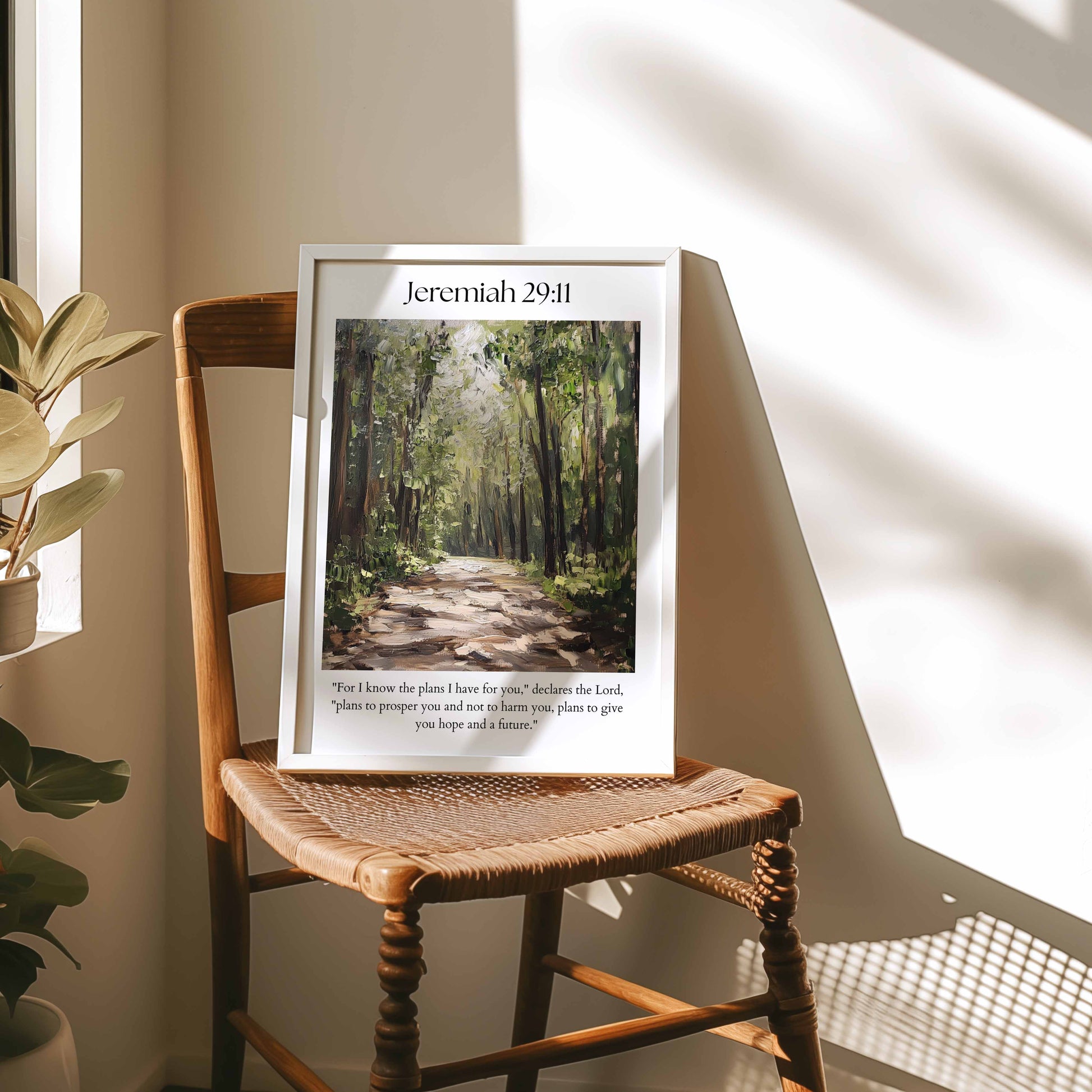 If you want calming Christian wall art with a message of hope, this Jeremiah 29:11 print is a beautiful choice. The warm forest path symbolizes trusting God’s direction and the promise of His good plans. Perfect for daily encouragement in any room.